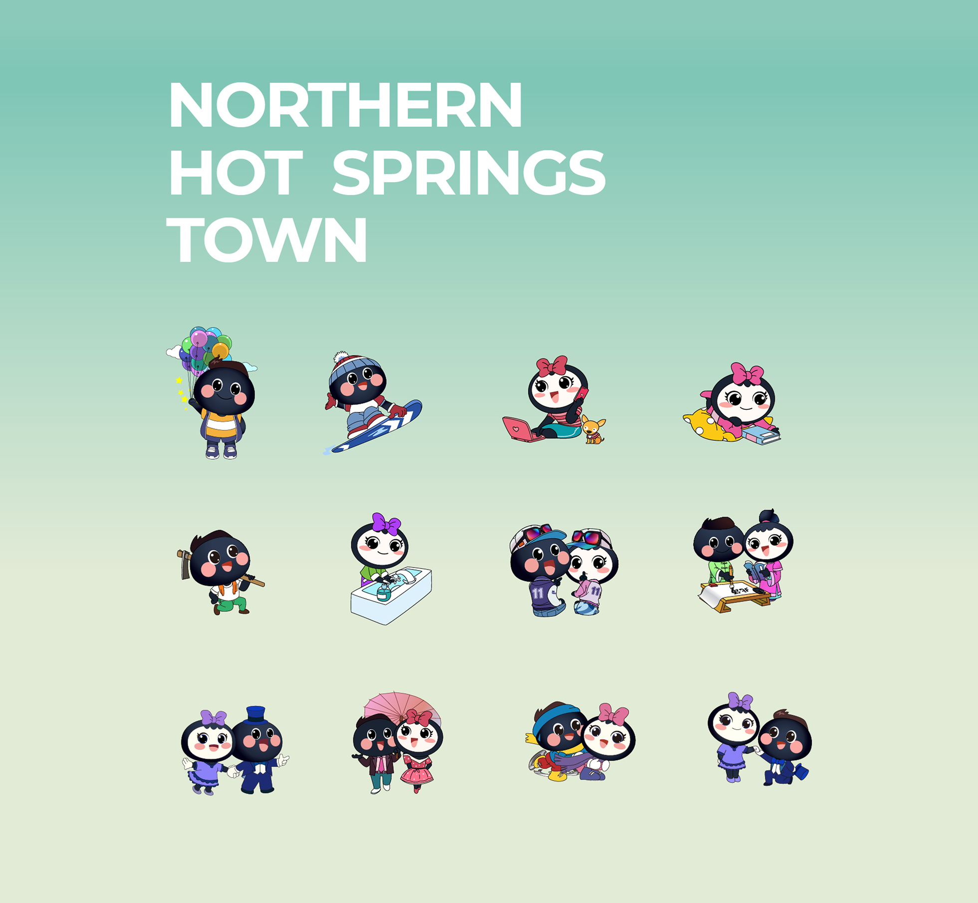 Enable the new traffic of network red town with IP. In-depth understanding of Shenyang's current largest hot spring tourism project, insight into the most important hot spring assets in Northern Hot Springs Town , with the country's only hot spring egg "black Yuzi" as the core of value, we estated the first IP image "Hei Zai&Tang Mei" for Shenyang cultural tourism.