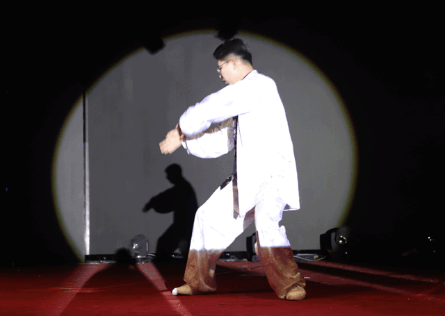 一位自称是丹东市太极拳协会的小唐人现场展示了中华传统武术,虽然不知道场下有没有武林高手,但明眼人都看得出来,他确实练过,幸好及时收手,没有伤及无辜。