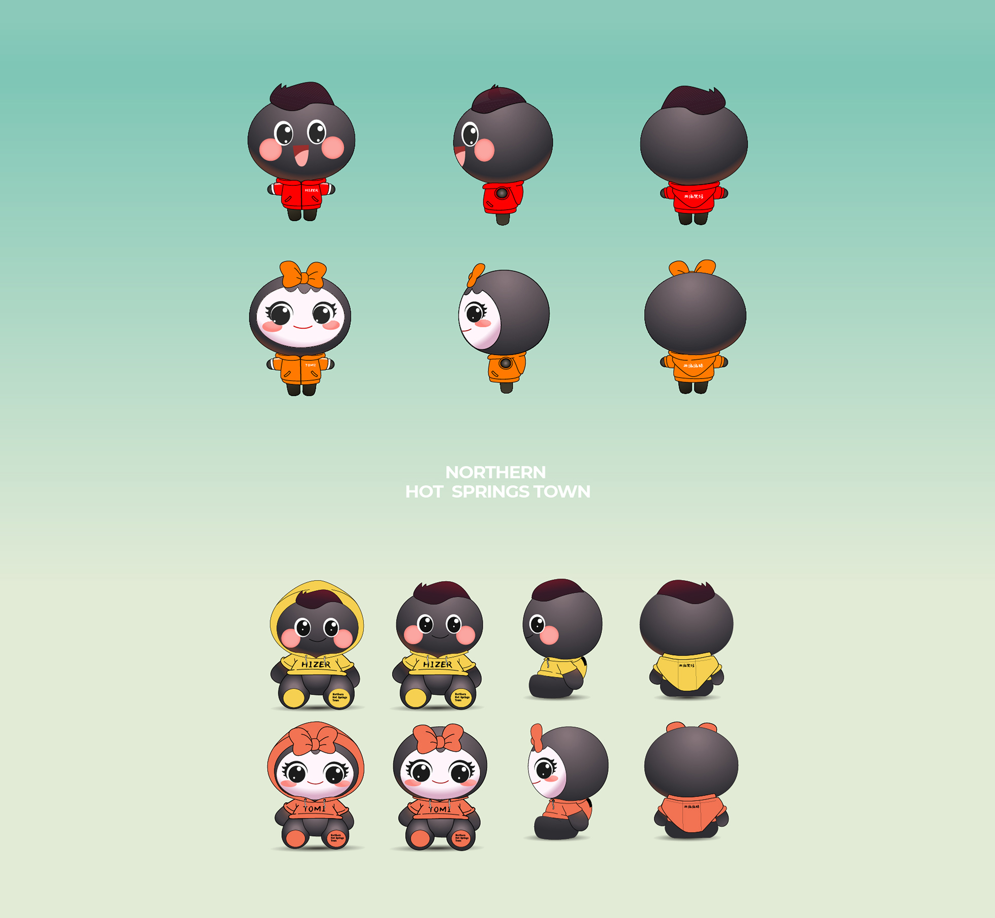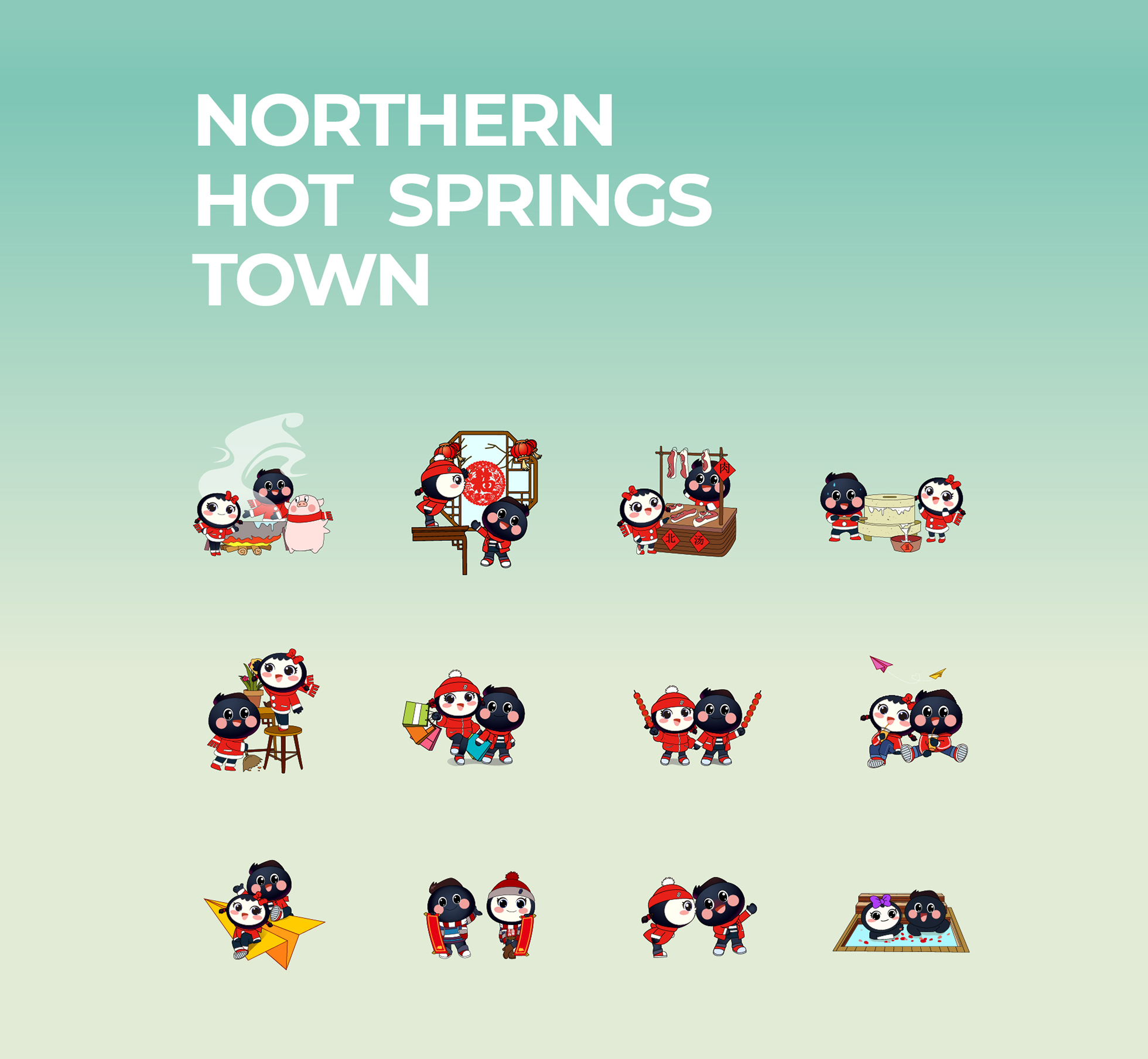 Enable the new traffic of network red town with IP. In-depth understanding of Shenyang's current largest hot spring tourism project, insight into the most important hot spring assets in Northern Hot Springs Town , with the country's only hot spring egg "black Yuzi" as the core of value, we estated the first IP image "Hei Zai&Tang Mei" for Shenyang cultural tourism.