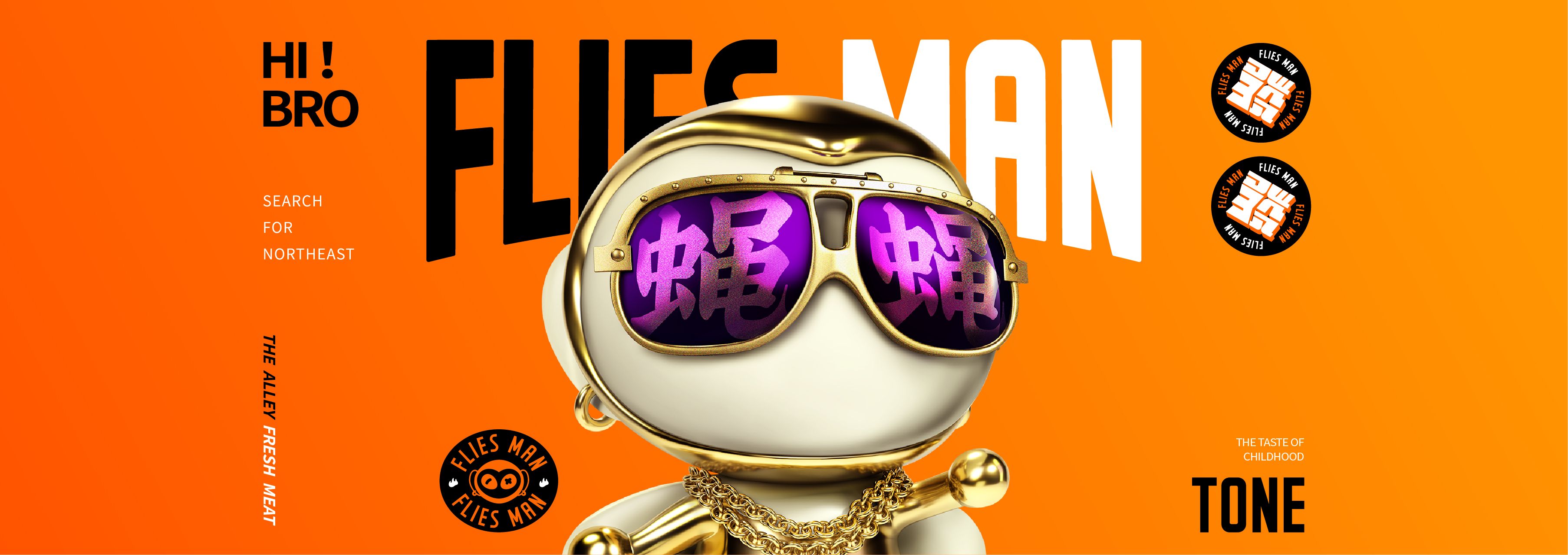 上世纪80年代末期,中国东北S城百废待兴,阿苍(后称苍蝇侠)在一条不起眼的胡同中茁壮成长。他深受胡同文化的熏陶,对于民间游戏和撩妹吹牛均有深刻的理解。幼时便被称为实验小学扛把子,后凭借爽快的作风很快树立威信,伙伴成群。有时一根筋闯下祸来,因认错态度良好,事后能积极改正,因此街坊邻居也算待他不薄。自封胡同口小霸王,成长过程中,长时间迷恋烹饪技术,尤其对肉串情有独钟。青年时期游历巴蜀地区,探访苍蝇馆子中的市井文化,并在归来后获得“苍蝇侠”称号,来源已不可考证。 苍蝇侠立志以敏锐的嗅觉天赋和深研十数载的烤炸双修炼绝活,振兴撸串大业,抒写新的传奇,打造丰富立体的潮流美味体验。这正是——胡同口,小狠串——苍蝇胡同!