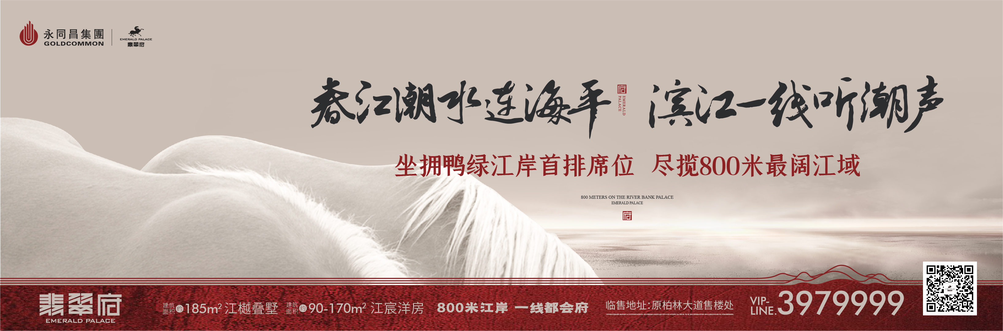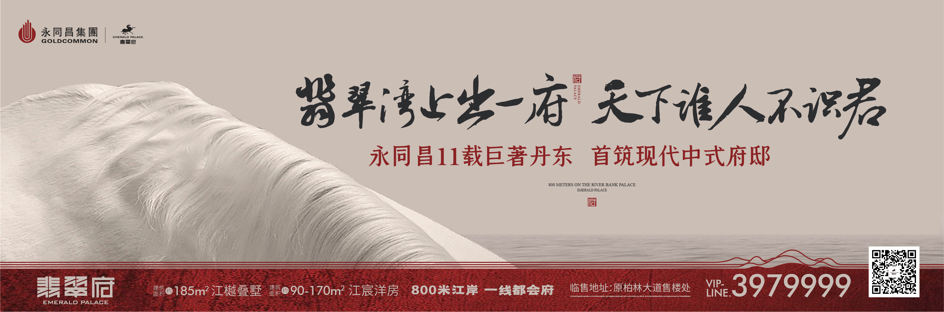 拙匠永同昌,墅立翡翠湾。作为永同昌集团丹东第七子,翡翠府择址鸭绿江之脊——翡翠湾央芯板块,于城市发展中轴之上,坐拥振兴醇熟主城,接驳新区未来发展。不可复制的一线首排滨江席位,尽揽逾800米最阔江面,兼得主城繁华与江湾潮涌,擎划寸土寸金的城市热土。