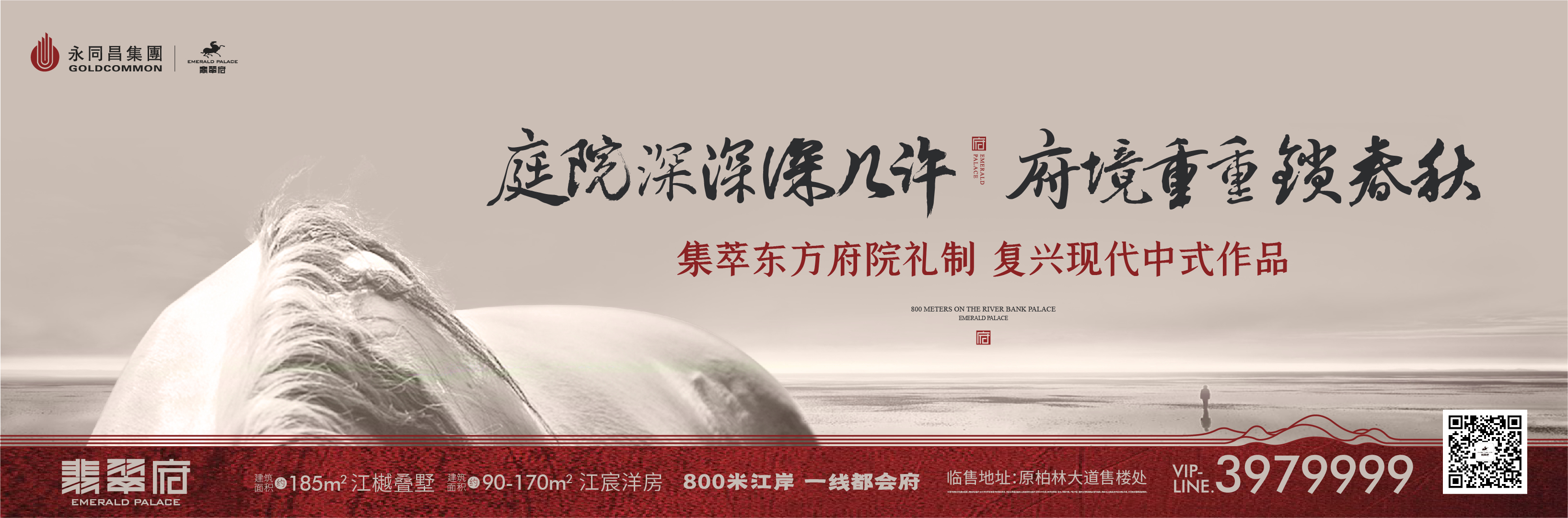 永同昌·翡翠府,溯源城市千年文脉,淬炼现代中式风骨,定制三重归家礼序、五重园林谧境,以纯粹低密江岸府院复兴世族大家门第威仪。建面约190㎡江樾叠墅、建面约90-177㎡江宸洋房,匹配城市高净值人群生活方式,舒朗敞阔的人居尺度,呈现宁静而大气的生活质感,迭代时代湾区上层生活理想。